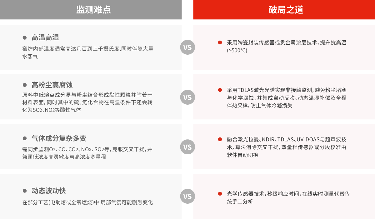 面對工業(yè)窯爐燃燒過程中高溫高濕、高腐蝕、高粉塵及氣體交叉干擾等嚴峻挑戰(zhàn),四方光電(武漢)儀器有限公司依托自主先進技術與創(chuàng)新方案,一舉突破傳統(tǒng)監(jiān)測瓶頸,為工業(yè)窯爐提供高效、精準、可靠的氣體監(jiān)測破局之道。